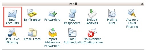 Option One: Access your cPanel. In the Mail section, click on Email Accounts.